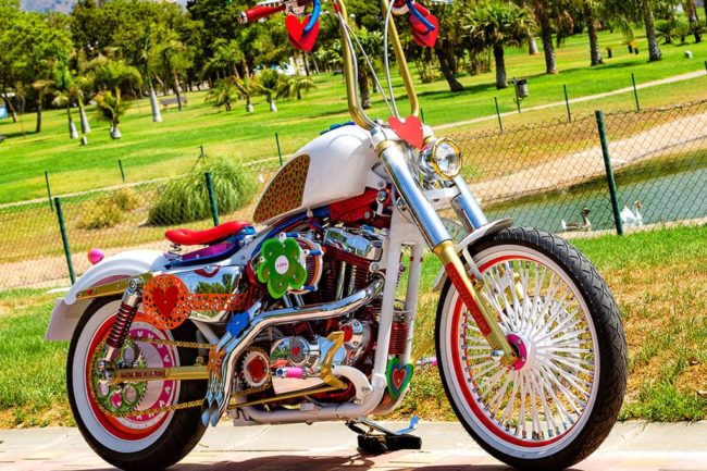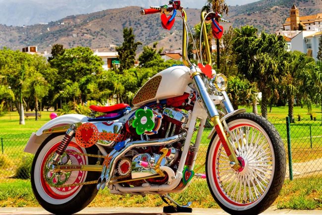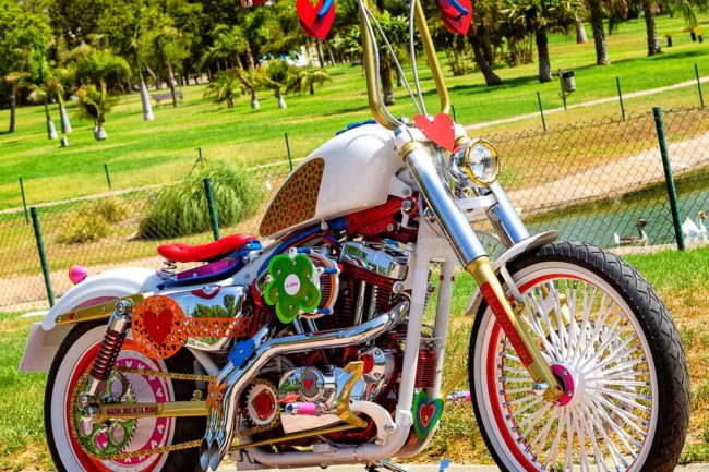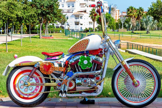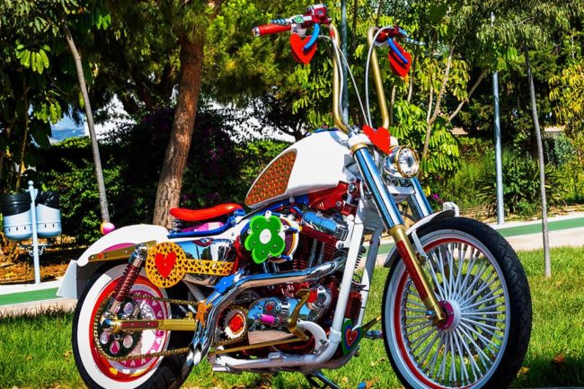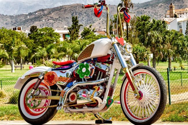 Here are some pictures of the first Agatha Ruiz de la Prada motorcycle, designed by Fran Manen and customized by his company Lord Drake Kustoms in his workshop in Malaga.